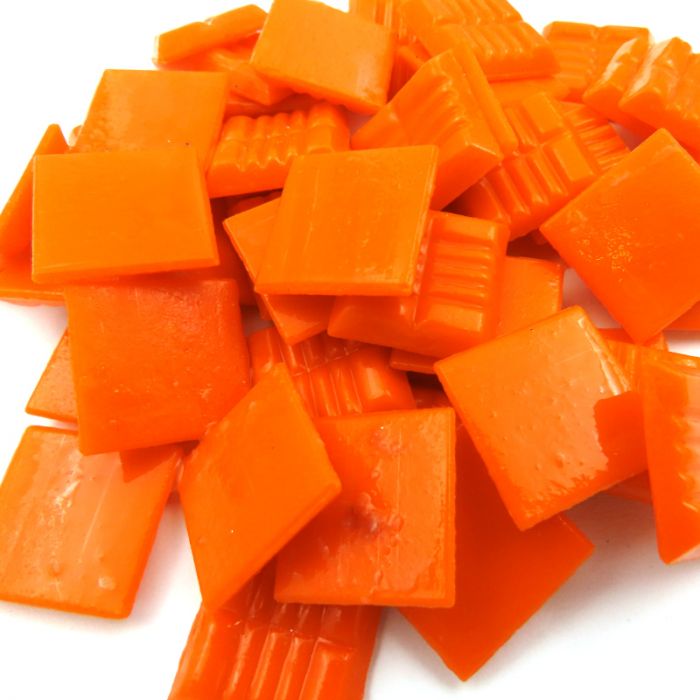 Superior quality vitreous glass mosaic from the same factory as Bisazza. 196 tiles, paper mounted on a sheet of 30×30 cm; each tile is 20mm² and 4mm thick. 11 sheets = 1m² . Each sheet weighs approx. 700g. High-temperature vitreous glass. UVA- and frost-resistant. Suitable for pools, spas, bathrooms, walls, and floors. Marbled effect acheieved by mixing molten glass in multiple colours. Some transparency may occur within individual tiles. Smooth, slightly striated finish on the surface.