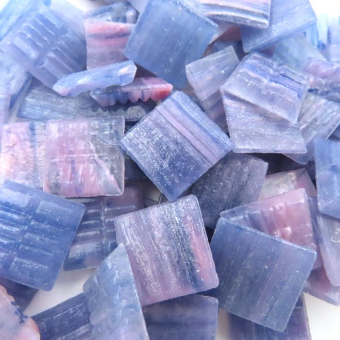 Superior quality vitreous glass mosaic from the same factory as Bisazza. 196 tiles, paper mounted on a sheet of 30×30 cm; each tile is 20mm²  and 4mm thick. 11 sheets = 1m² . Each sheet weighs approx. 700g. High-temperature vitreous glass. UVA- and frost-resistant. Suitable for pools, spas, bathrooms, walls, and floors. Marbled effect acheieved by mixing molten glass in multiple colours. Some transparency may occur within individual tiles. Smooth, slightly striated finish on the surface.