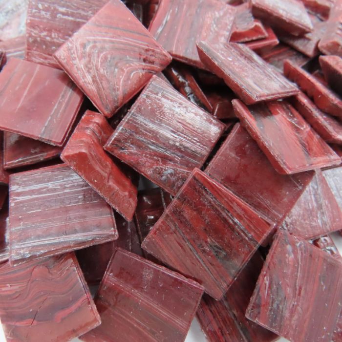 Superior quality vitreous glass mosaic from the same factory as Bisazza. 196 tiles, paper mounted on a sheet of 30×30 cm; each tile is 20mm² and 4mm thick. 11 sheets = 1m² . Each sheet weighs approx. 700g. High-temperature vitreous glass. UVA- and frost-resistant. Suitable for pools, spas, bathrooms, walls, and floors. Marbled effect acheieved by mixing molten glass in multiple colours. Some transparency may occur within individual tiles. Smooth, slightly striated finish on the surface.