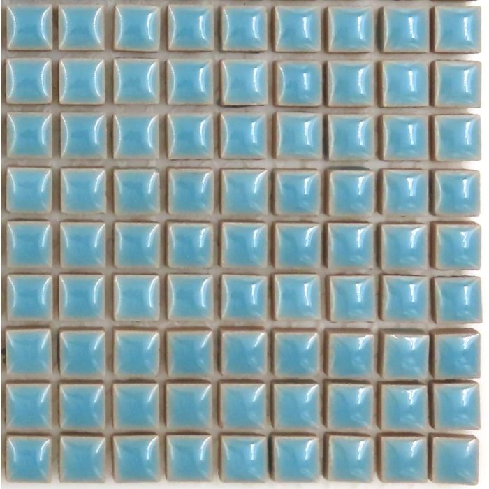 Hired-fired ceramic tile in versatile 10mm size. Each tile is 10x10x5mm with a high gloss glazed surface that is slightly domed (max. centre thickness of ±6mm). Traditional, durable, elegant and versatile, these tiles are mesh-mounted for installation on flat or curved surfaces as well as hobby projects both indoors and outdoors. UVA- and frost-resistant when used with suitable adhesive and grouts. Density and glaze making cutting difficult; best left whole.