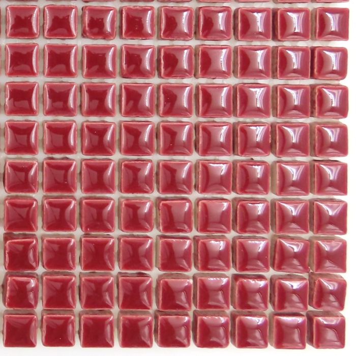 Hired-fired ceramic tile in versatile 10mm size. Each tile is 10x10x5mm with a high gloss glazed surface that is slightly domed (max. centre thickness of ±6mm). Traditional, durable, elegant and versatile, these tiles are mesh-mounted for installation on flat or curved surfaces as well as hobby projects both indoors and outdoors. UVA- and frost-resistant when used with suitable adhesive and grouts. Density and glaze making cutting difficult; best left whole.