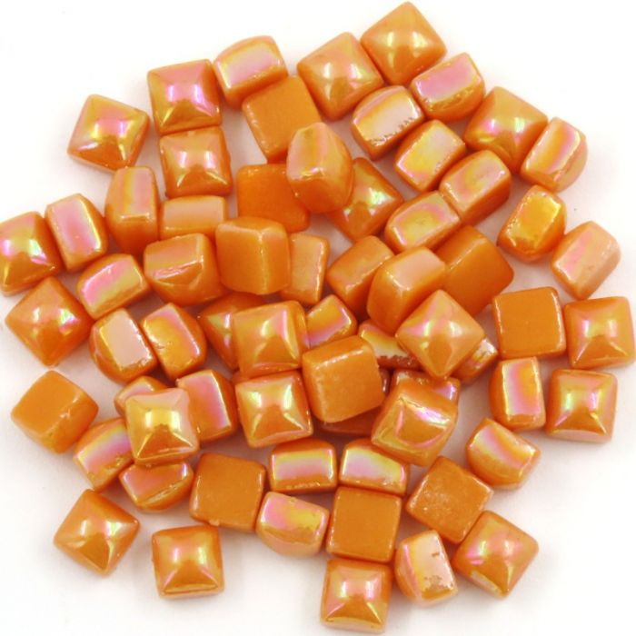 Made from 100% recycled glass and mineral pigments, colourfast, UVA- and frost-resistant, and suitable for use indoors and outside in all weather. Designed to colour coordinate with all our Turkish products. The iridised finish is permanently etched with Italian acid. Each measures approximately 4.8mm² and 4mm thick at the edge with a slightly domed surface. Can be cut if desired.