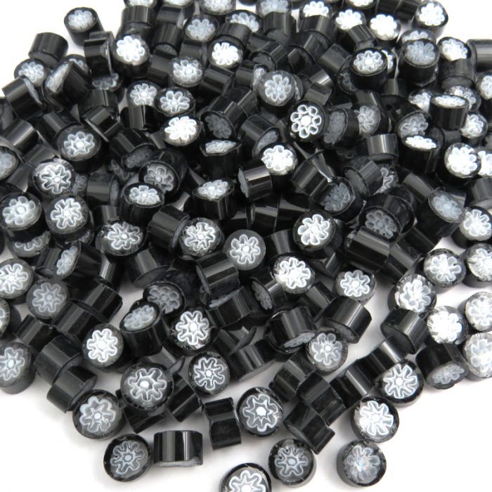 Handmade in Murano since the 15th century by the world renowned Effetre. The millefiori are compatible with Moretti glass for fusions (C.O.E. 104), but not with Uroburos or Borosilicate. Please note that size and colour may vary with each delivery.