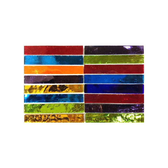 This product was designed to satisfy the magpie in each of us. Dazzling mirror in colours that are close to impossible to find in regular tile shops or even craft stores. Nipping off a piece, from the 10mm x 65mm slivers, is a snap with wheeled nippers. These tiles come mounted on protective film that peels away quickly and cleanly.