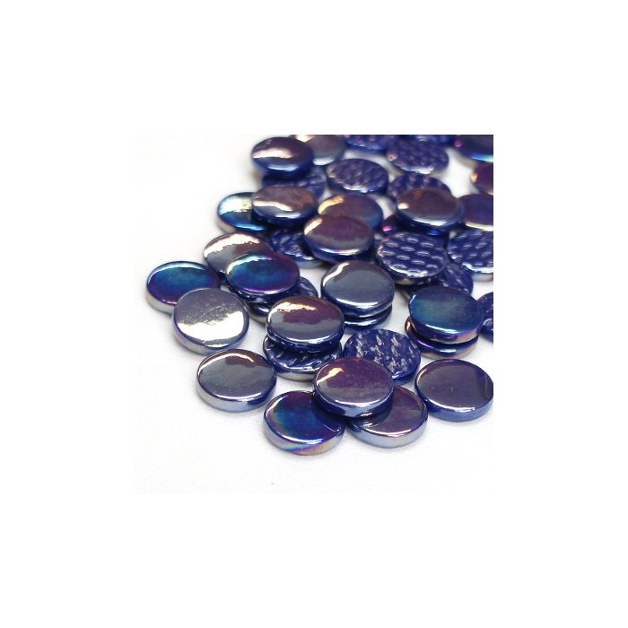 Opaque 18mm Penny Rounds in an iridescent finish. Sintered glass round tiles made from 100% recycled materials in rich colours that match our other Ottoman collections seamlessly. These glass coins have a diameter of 18mm and a 4mm thickness, making them ideal for combining with both 15mm and 20mm tiles. Wheeled nippers cut them beautifully, with little or no waste.