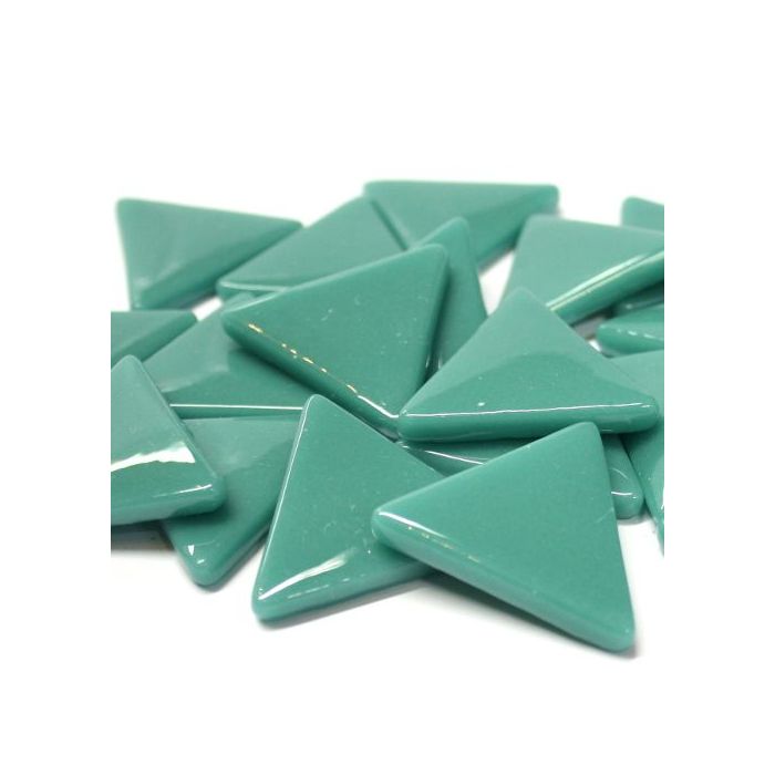 Opaque 29mm equilateral triangles with a high-gloss finish. Made using the sintering process, these tiles are strong as well as beautiful. Each is 29mm on all three sides, and 4mm thick. Of course, they combine fantastically with our Ottoman series of 8mm, our Sicis lookalikes and originals as well as classic vitreous mosaic and stained glass. We do not recommend full fusing, as it results in a grainy surface and blurry edges.
