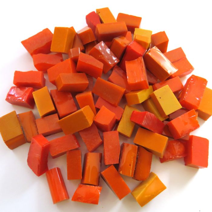 This is an amazing find from the estate of a Belgian mosaic and glass artist. This collection of smalti dates back to the 1950's and 60's and was made in Delft, Noord Holland (long famous for its tiles) by a now defunct glass factory. Absolutely priceless and irreplaceable with the look and feel of Byzantine smalti that is centuries old. The cuts are very irregular more closely resembling Perdomo (Mexican smalti) and the B cuts of Ravenna. The colours are rich and intense. We have created a collection of colour mixes that we believe showcase the beauty of the glass while retaining value. Unfortunately we cannot get any more so when this is sold that's it. As they say in Holland 'Op is Op'!