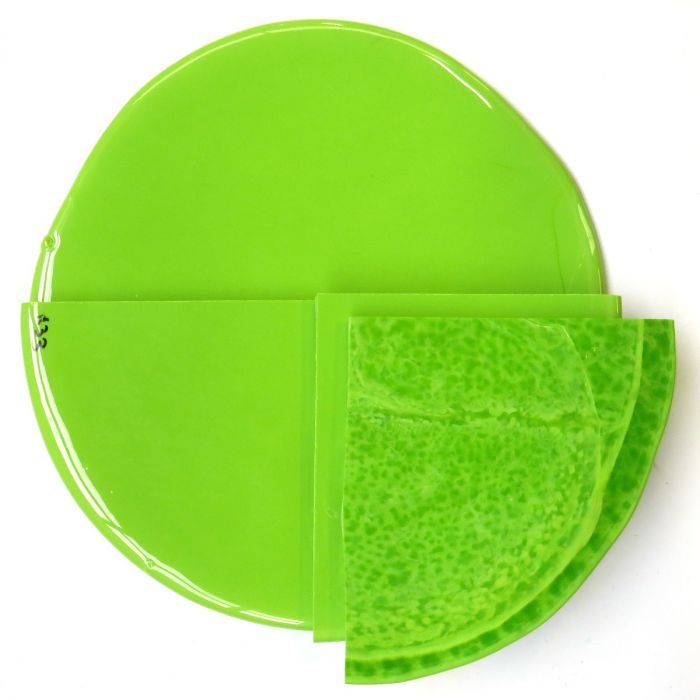 Original Italian smalti made by the famous Dona of Spilimbergo. Undulating handmade glass tesserae. May be left ungrouted if indirect method is used. This is for 1/4 of the handpoured pizza and can be cut or left whole. Each side presents different colours, textures and reflectivity. As the molten glass comes into contact with the solid surface it is poured onto crystallisation occurs rapidly and certain minerals and oxides are drawn to contact surface resulting in unpredictable reactions. This is seen as an added attribute not as a flaw. The 1/4 pizzas can be cut using multiple methods such as a wheeled nipper, hammer and hardie or even a glass scorer and heavy duty runner.The cut side is the one traditionally displayed but in contemporary mosaic all sides may be utilised to create contrasting and harmonising surfaces. Each quarter pizza weighs between +/-530g-+/-570g.