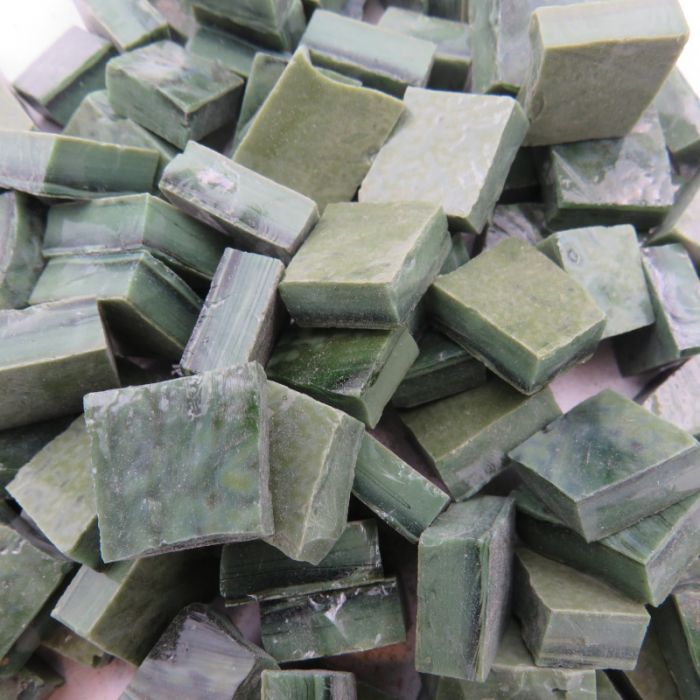 This is the famous, much sought after Mexican Smalti by Perdomo. It is hard to come by as it is an authentic, artisanal product from Cuernavaca, Mexico with no website, sample cards or easy access. Perdomo specializes in the making of mosaic murals so their focus is in the production of custom colours not a standard range. As a handmade product variations in colour is normal. The unique quality about Mexican smalti is that the front and back are slightly different colors. One side of the smalti is glossy while the other side has texture and variation of colors. This brings a natural, 'living' effect to the tesserae.
