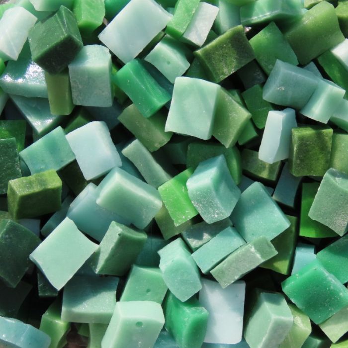 This smalti is made from a combination of recycled and natural oxides and is easy to cut using a wheeled nipper and can be applied in direct, indirect or double indirect methods. This product looks more like Antique Byzantine smalti than modern Venetian smalti. The colour tends to be more muted and the finish is more grainy with a slight translucency. The colour may show variegation through the matrix.