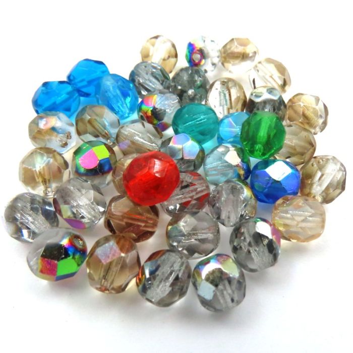 Pressed Czech Crystal in spherical form of 7mm. Multifaceted for extra reflection and shine. Double fired and acid etched for a durable iridescent finish. Weather and UV resistant.