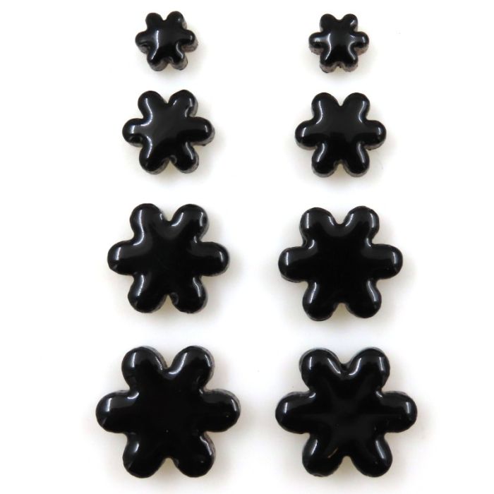 Our exclusive charm mix that consists of 4 sizes of 6 petalled flowers (23mm, 20mm, 15mm, 10mm), in our most popular colours of glazes. These are low-fired and can go outside as they are UV-resistant but they are not frost-resistant so should be protected during extremely low temperatures below -10°C.