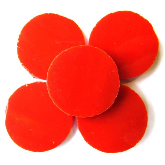 Hand-cut circles made from Tiffany stained glass in 25mm diameter. The thickness is 3mm and combines easily with all standard stained glass and mirror. As these are individually cut and shaped there will be variations in size and shape and as they are cut from sheets of stained glass which are blends and tones of varying depths each circle might vary within a range of colours. Please note that the actual items may not perfectly match the photos. As stained glass is thinner, please remember that it might be more fragile than vitreous or sintered mosaic tile.