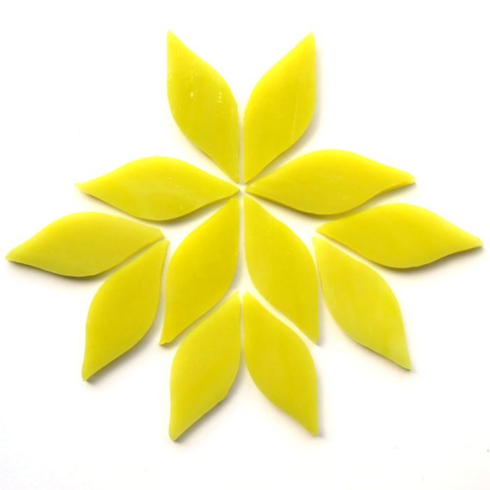 These pointed, elliptical petals are hand-cut and shaped from genuine Tiffany glass. This product is artisanal and, therefore, pieces may vary slightly in colour, size, and form. This is not considered a flaw. As stained glass is thinner, please remember that it might be more fragile than vitreous or sintered mosaic tile. Six pieces form a classic flower. Each piece measures 15×38mm, and 3mm thick.