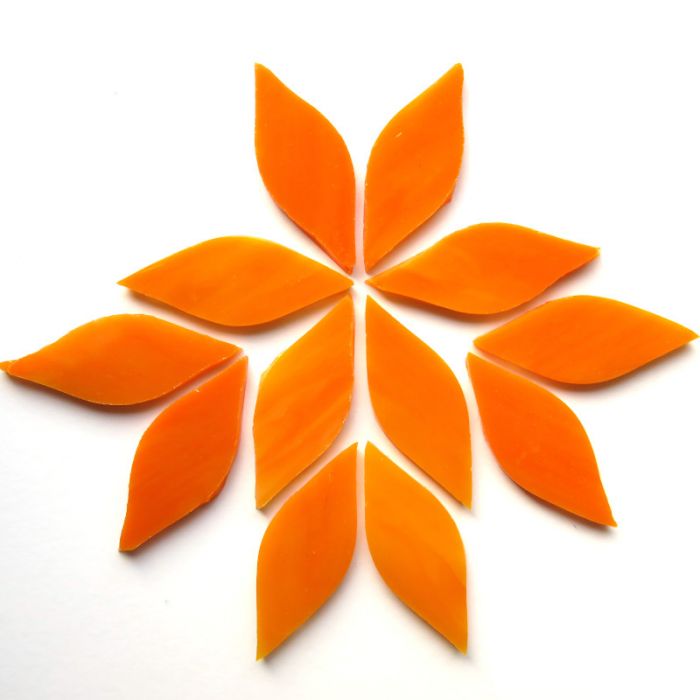 These pointed, elliptical petals are hand-cut and shaped from genuine Tiffany glass. This product is artisanal and, therefore, pieces may vary slightly in colour, size, and form. This is not considered a flaw. As stained glass is thinner, please remember that it might be more fragile than vitreous or sintered mosaic tile. Six pieces form a classic flower. Each piece measures 15×38mm, and 3mm thick.