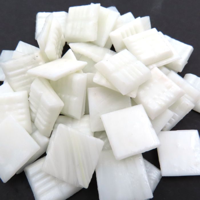 Superior quality vitreous glass mosaic from the same factory as Bisazza. 196 tiles, paper mounted on a sheet of 30×30 cm; each tile is 20mm² and 4mm thick. 11 sheets = 1m² . Each sheet weighs approx. 700g. High-temperature vitreous glass. UVA- and frost-resistant. Suitable for pools, spas, bathrooms, walls, and floors. Marbled effect acheieved by mixing molten glass in multiple colours. Some transparency may occur within individual tiles. Smooth, slightly striated finish on the surface.