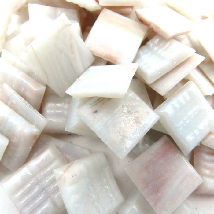Superior quality vitreous glass mosaic from the same factory as Bisazza. 196 tiles, paper mounted on a sheet of 30×30 cm; each tile is 20mm² and 4mm thick. 11 sheets = 1m² . Each sheet weighs approx. 700g. High-temperature vitreous glass. UVA- and frost-resistant. Suitable for pools, spas, bathrooms, walls, and floors. Marbled effect acheieved by mixing molten glass in multiple colours. Some transparency may occur within individual tiles. Smooth, slightly striated finish on the surface.